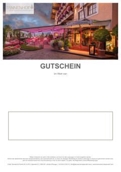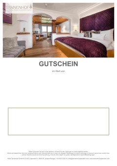 Dieser Gutschein ist nicht in Bar ablösbar und kann für alle Leistungen im Hotel eingelöst werden.